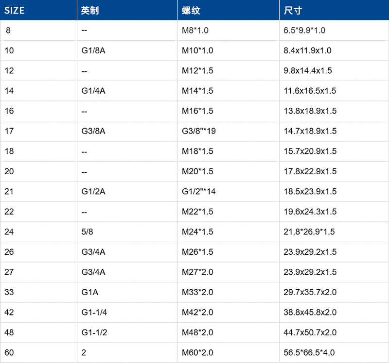 適用范圍:液壓管接頭、氣缸、水管、閥門等