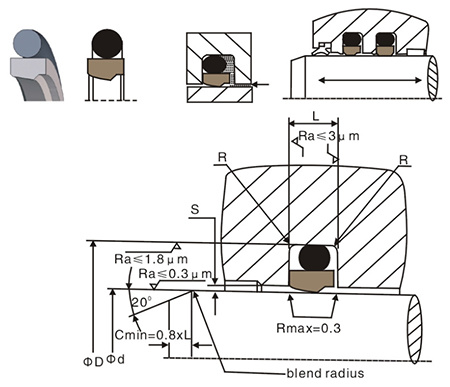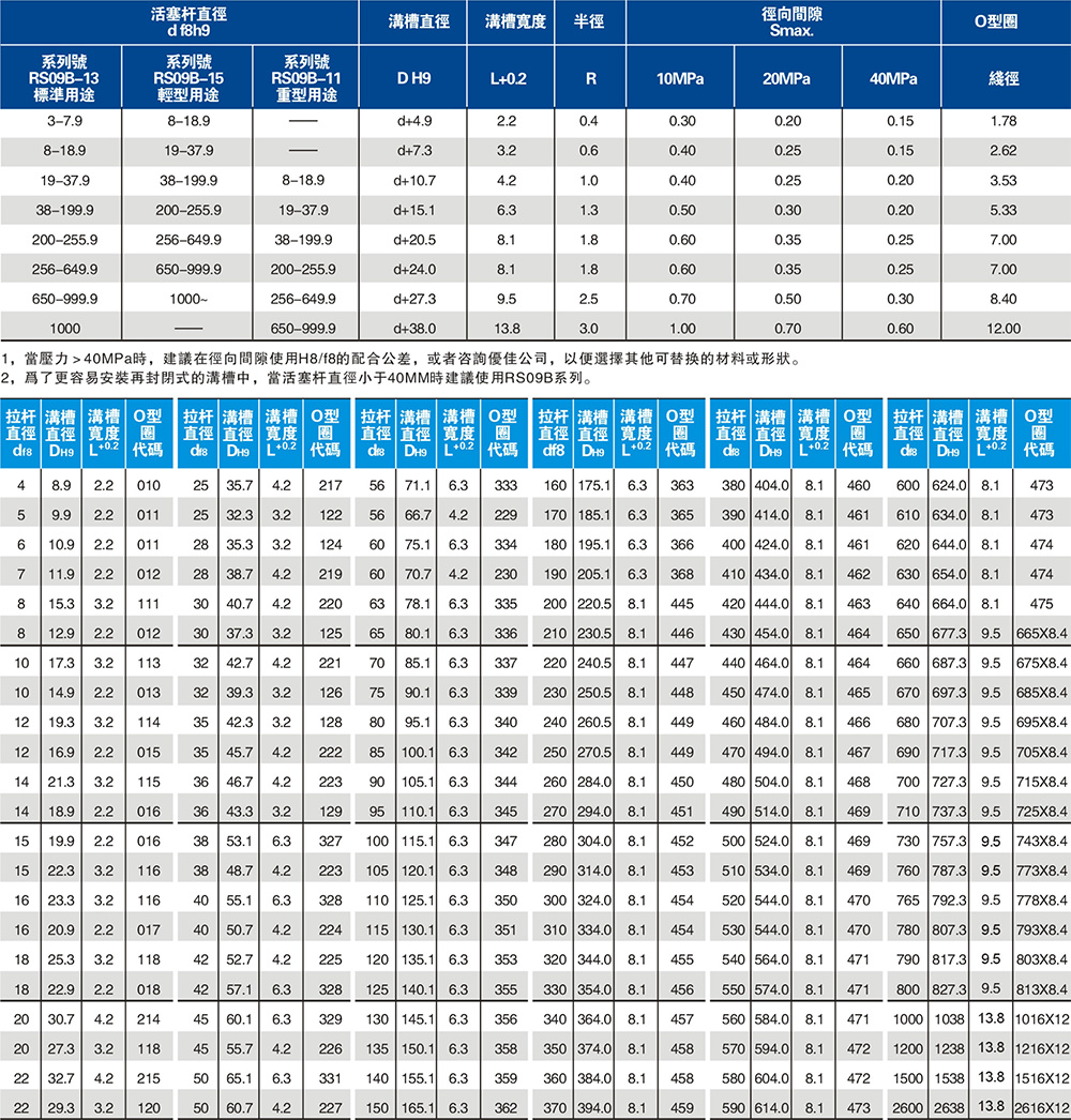 作用:RS09B型是一個單向的活塞桿密封。適用于高頻率下的短流程。為了抵消在極度壓力下偶爾發(fā)生的滲透,建議連續(xù)使用倆個密封,如圖。